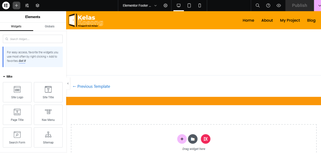 Untuk membuat tahun sekarang pada footer yang dicustom sendiri menggunakan elementor, anda dapat masuk ke menu theme builder,