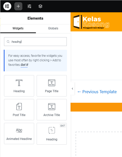 Untuk mempermudahketikkan heading pada pencarian widget