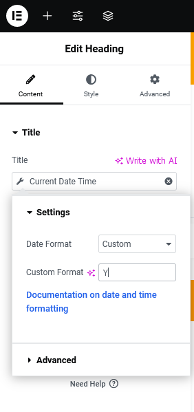 Selanjutnya pilih icon config pada bagian title, dan sesuaikan dengan kondisi yang akan ditampilkan, jika ingin menampilkan tahun maka ubah bagian berikut